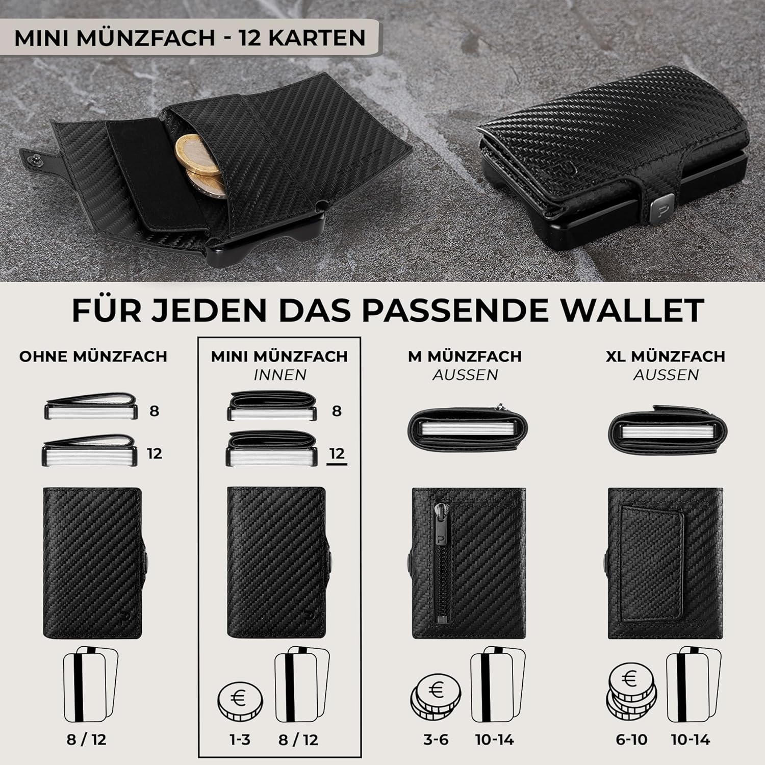 Die 12-Karten Version mit micro Magnet Münzfach: