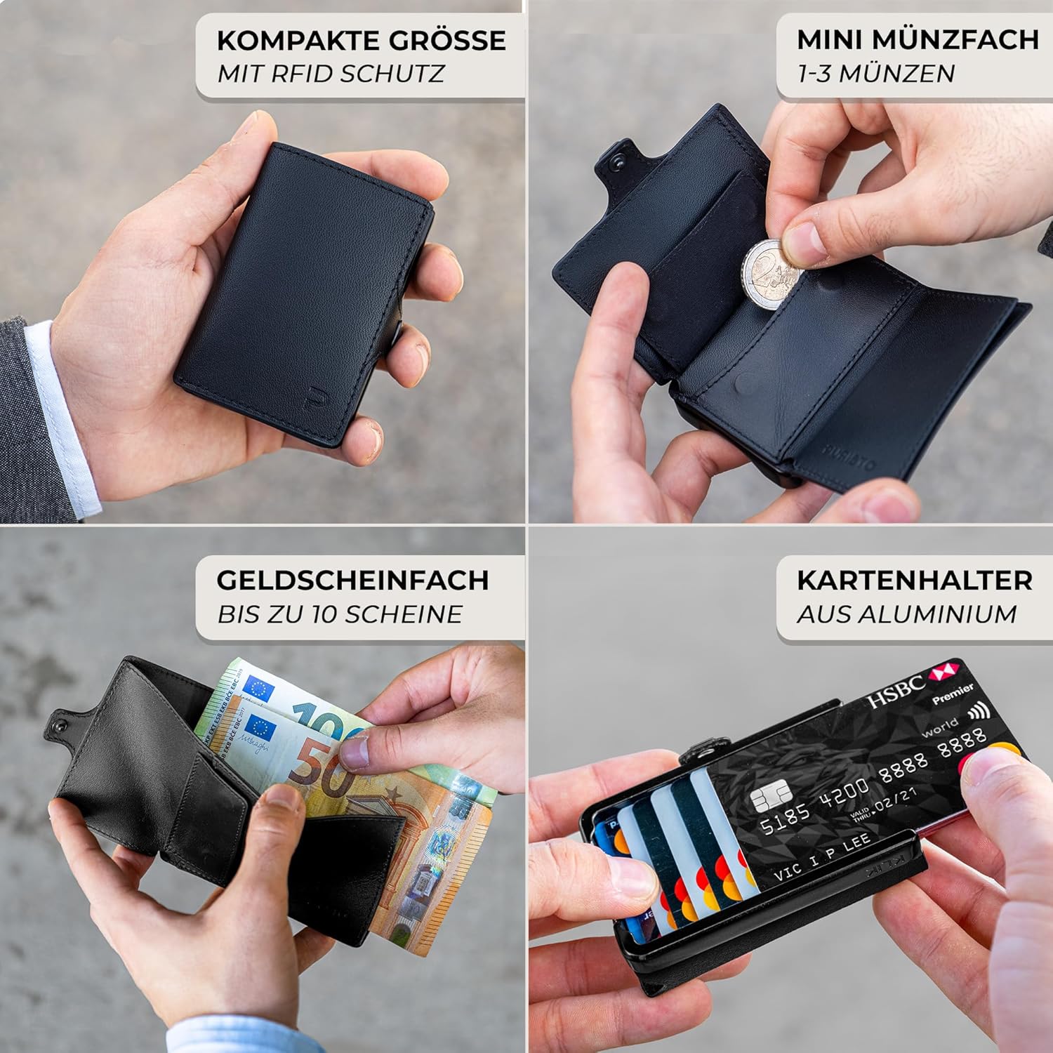 - 360° RFID-Schutz zum sicheren Aufbewahren deiner Karten und Daten